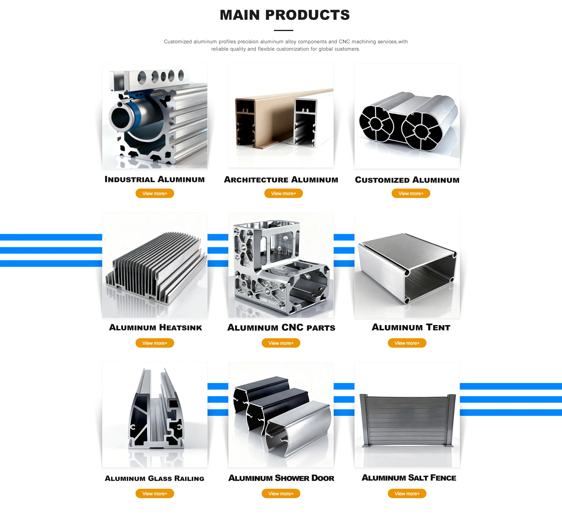 주요 제품:샤워 문, 슬랫 울타리, 알루미늄 프로파일, 유리 울타리, CNC 부품